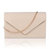 Larcenciel Bolso Fiesta Mujer Nude, Bolsos de Fiesta Tipo Sobre de Piel Vegana con Cadena, Bolso Mujer Bandolera de Moda, Cartera de Mano Crema, Clutch Elegantes para Fiesta Boda Ceremonia, 22x5x12cm