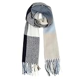 FURTALK Bufanda suave y cálida de cuadros grandes para mujer, otoño e invierno, azul, Talla única