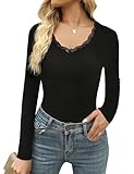- Diseño de moda: Camiseta ajustada de manga larga para mujer con escote en V profundo y diseño de encaje, que resalta la encantadora clavícula y añade sensualidad. Camiseta de mujer de color liso,...