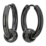 - 2 Negro Círculo Perla Pendientes del Aro, Pendientes para Hombres Mujer, Acero Inoxidable