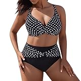 Traje de baño de una Pieza para Mujer, Traje de baño de Lunares, Tallas Grandes, Traje de baño Adelgazante con Escote en V Profundo, Acolchado, Moldeador de Figura Moda de Playa Mujer Trajes Traje